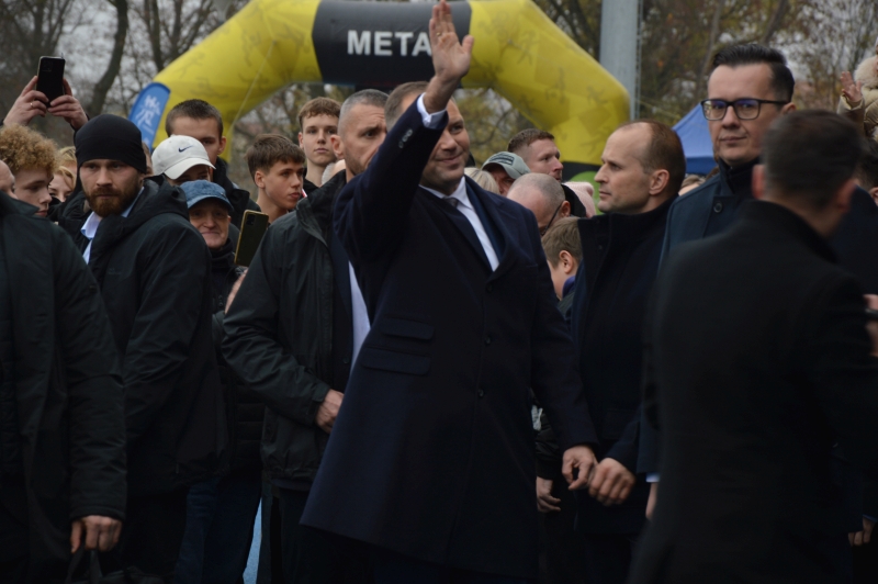 Prezydent Karol Nawrocki na kętrzyńskim stadionie wręczał nagrody uczestnikom biegu niepodległościowego. Głowa Państwa znalazła też czas na rozmowy z mieszkańcami Kętrzyna, pamiątkowe zdjęcia i autografy.